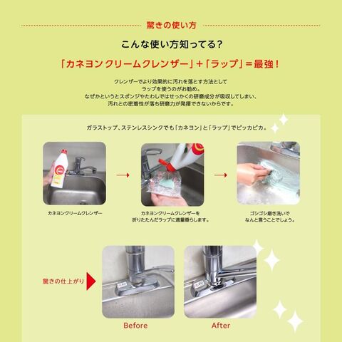 ◆研磨力と洗浄力の相乗効果で、液体洗剤では落ちにくい油汚れやガンコな焦げ汚れなどをしっかり落とすお台所の必需品です。