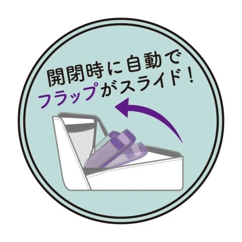 ◆開閉時に自動でスライドする小物ポケット付のフラップ