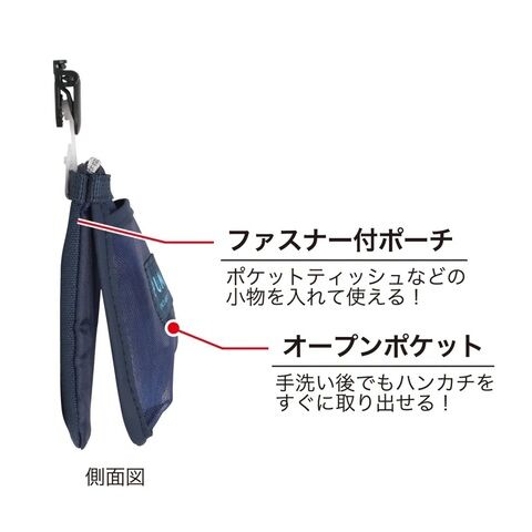 ◆本体収納部は持ち物を落としにくいファスナー付きのメッシュポケットポーチ