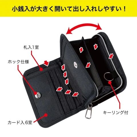 ◆札入、カード入部分はホック仕様で開けやすく、小銭入は大きく開いて使いやすい