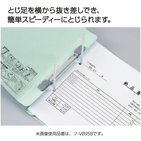 ◆従来からのとじ足を穴に通すのではなく、横から出し入れできる新設計とじ具を採用