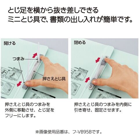 ◆従来からのとじ足を穴に通すのではなく、横から出し入れできる新設計とじ具を採用