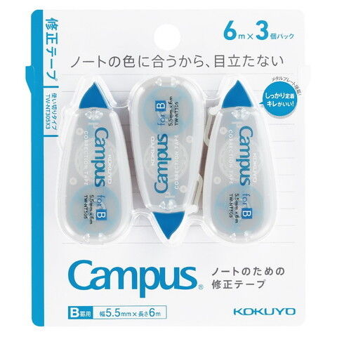 コクヨ キャンパス修正テープ 使い切り B罫用(テープ幅5.5mm) 6m 3個パック TW-NT305X3 【返品種別A】