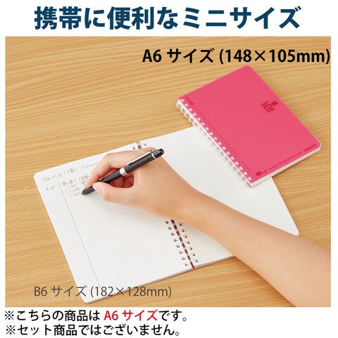 リング形状が“Dの字型”になっているので、リング幅がコンパクトでリングノート特有のかさばり感がありません。