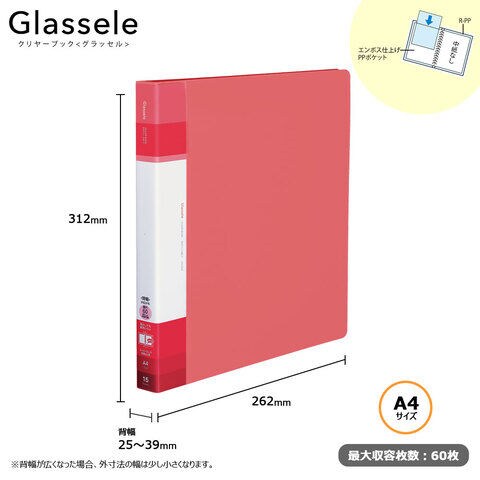 コクヨ クリヤーブック グラッセル 替紙式 A4ミドル P(コーラルピンク) ラ-GLB720P 【返品種別A】