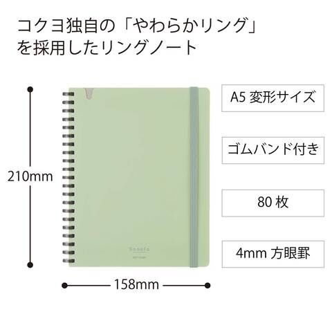 コクヨ ソフトリングスーファ 方眼 A5変形 80枚 緑(グリーン) ス-SV738S4-G 【返品種別A】