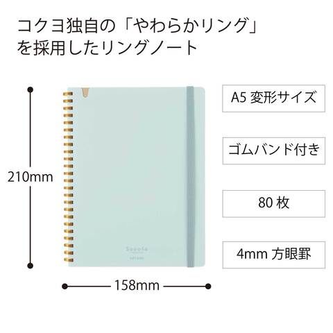 コクヨ ソフトリングスーファ 方眼 A5変形 80枚 青(ライトブルー) ス-SV738S4-LB 【返品種別A】