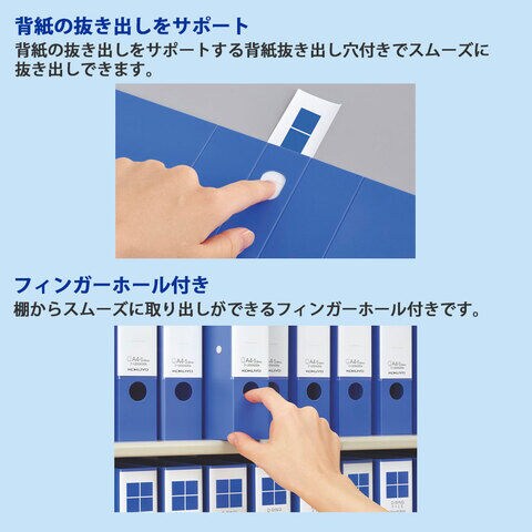 背紙の抜き出しをサポートする背紙抜き出し穴付きです