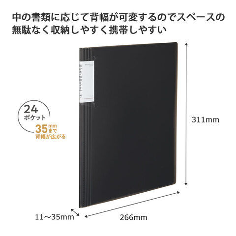 書類の量に合わせて背幅が変わるので、いつでもコンパクトに書類を収容できます