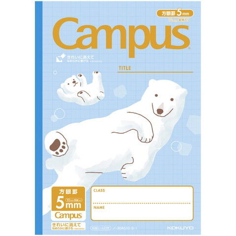 コクヨ キャンパスノート 用途5ミリ10ミリ アニマル柄1(シロクマ) ノ-30AS10-5-1 【返品種別A】