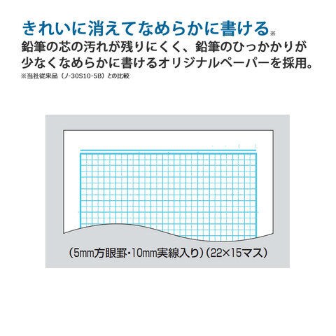 ◆紙の表面の凹凸を小さくすることで、鉛筆の芯の汚れが残りにくくなりました。
