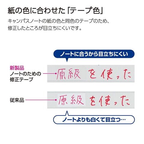 ◆キャンパスノートの紙の色と同色のテープのため、修正したところが目立ちません。