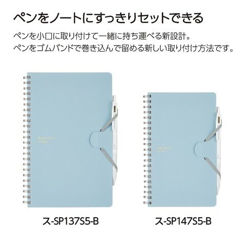 ◆ペンをゴムバンドで巻き込んで留める新方式、小口にペンを取り付けて持ち運ぶことができます。
