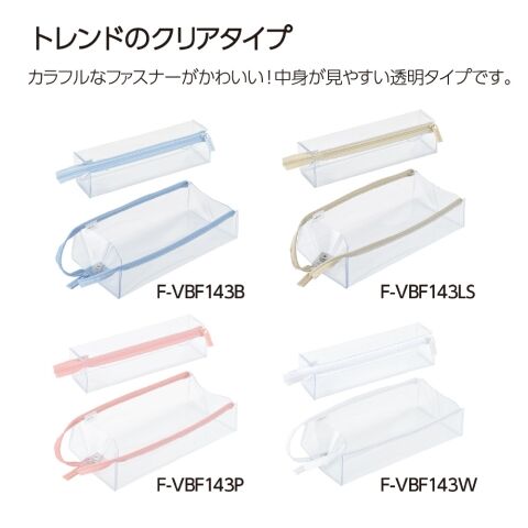 ◆クリアタイプのファスナーがワンポイントカラーで、中身が把握しやすい透明タイプです。