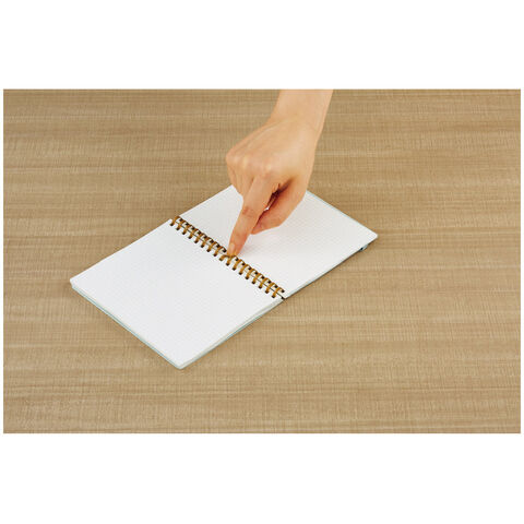 ◆平らに開くので書き込みやすい、平らに折り返せるので狭い場所でも心地よく使える、といったリングノートのよさはそのままに、書くときリングに手が当たっても気にせず端まで美しく書けます。