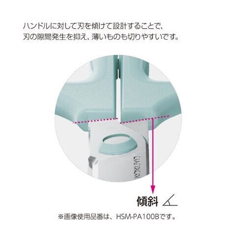 ◆コクヨ開発「ハイブリッドアーチ刃」搭載で、刃先にかけて刃の角度が徐々に広がっているため、今まで切りにくかったものも根元から刃先まで軽い力で切れます。