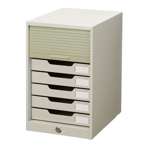 ◆シャッターの開閉が軽く、滑らかに使用できます。引き出しには、A4サイズの書類が入り、しかも、シャッターに施錠できますから、保管にも安全です。