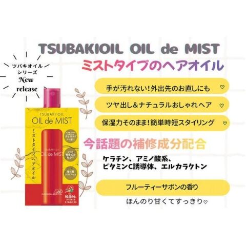 ◆オイルのべたつきを感じさせないふわっとした使い心地で、近くからスプレーすると毛先等のポイント補修になり、離してスプレーすると、髪全体のツヤ感アップに仕上がります。