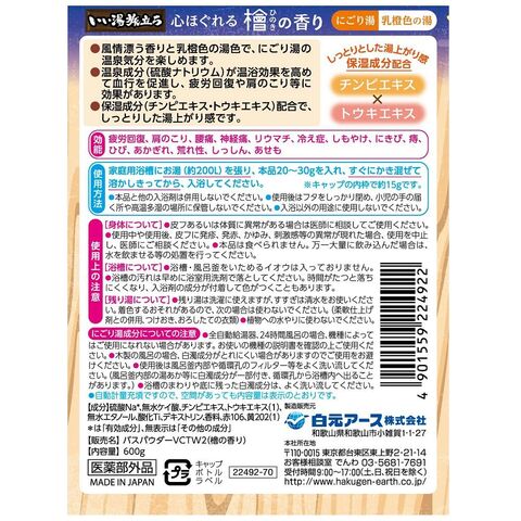 白元アース いい湯旅立ちボトル にごり湯 檜の香り600g イイユタビダチニゴリユヒノキN 【返品種別A】
