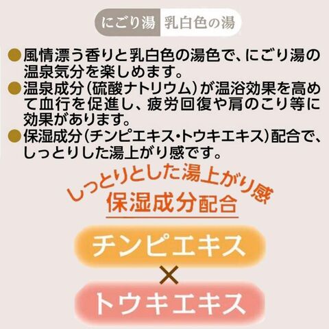 ◆保湿成分(チンピエキス・トウキエキス)配合で、しっとりした湯上り感です。