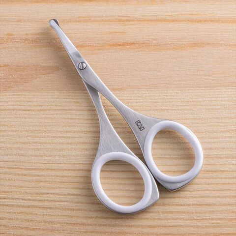 ◆女性向けの指穴サイズで、すべりにくい樹脂リングを装着したオール金属の鼻毛用ハサミです。