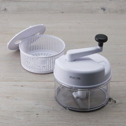 - 材質:容器/AS樹脂(耐熱温度70度)、蓋・裏蓋・ハンドル/ABS樹脂(耐熱温度80度)、取っ手・水切り器/ポリプロピレン(耐熱温度110度)、ギア/ポリアセタール(耐熱温度80度)、刃/ステンレス刃物鋼