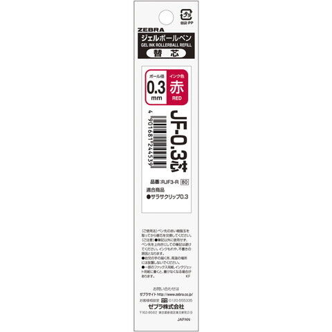 ゼブラ <サラサ単色用>替芯 JF-0.3芯(赤) ZEBRA RJF3-R 【返品種別A】
