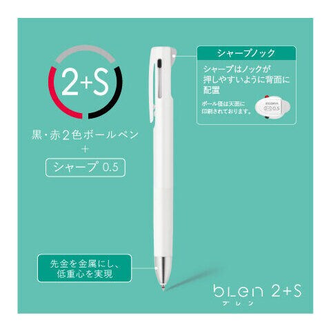 ゼブラ ブレン2+S 0.5mm(ブルーグリーン/黒・赤インク) ZEBRA エマルジョンボールペン・多機能ボールペン・シャープペン B2SAS88-BG 【返品種別A】