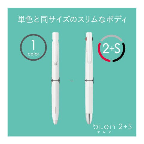 ◆1本で2色とシャープペンを使えるのに、スリムなボディ。「ブレンシステム」を搭載した多機能ペンです。