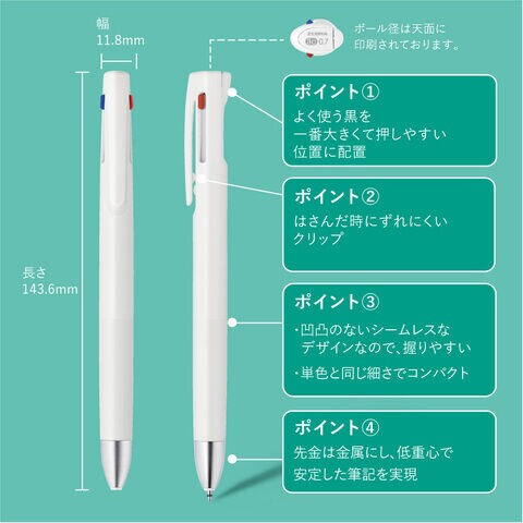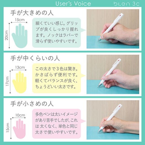 ◆1本で3色使えるのに、スリムなボディ。「ブレンシステム」を搭載した3色ボールペンです。
