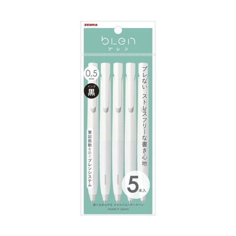 ゼブラ ブレン 0.5mm 5本入(白/黒インク) ZEBRA エマルジョンボールペン P-BAS88-W5 【返品種別A】