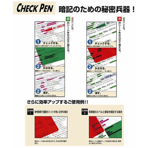◆覚えたい部分に赤のペンでマークし、緑のシートをかぶせると、マークした部分が隠れるので繰り返して覚えられます。