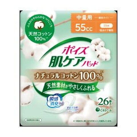 日本製紙クレシア ポイズ 肌ケアパッド ナチュラルコットン100% 中量用 55cc 26枚 ホイスハツトコツトン26マイ 【返品種別A】