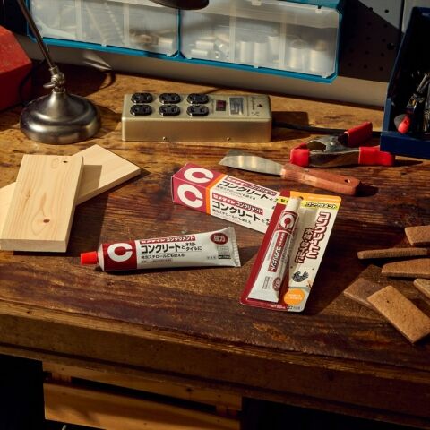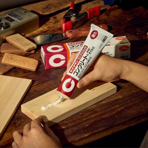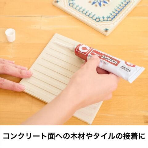 ◆コンクリート、モルタル面への木、陶磁器タイル、硬質塩化ビニル、発泡スチロールの接着に。