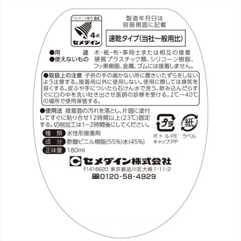 セメダイン 木工用速乾 180ml(ポリ容器) CA-238 【返品種別B】のレビュー