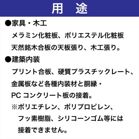 ◆各種化粧合板、硬化プラスチック、ボード、金属板等と木材、コンクリート、スレート板の接着。