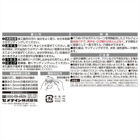 ◆特殊ガラスバルーン配合の水性パテです。