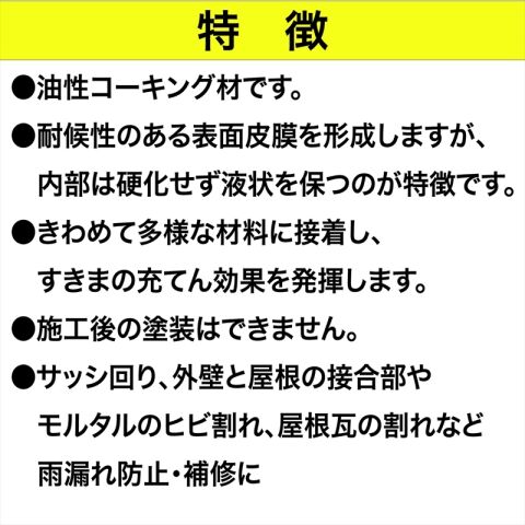 ◆サッシ回り、外壁と屋根の接合部やモルタルのひび割れ、屋根瓦の割れなどの雨もれ防止・補修に使えます。