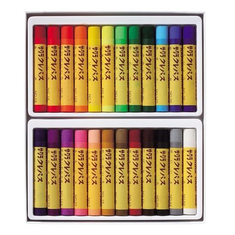 • 24色:レモン色・黄色・みかん色・橙・薄橙・茶色・黄土色・こげ茶・朱色・赤・桃色・明るい紫・紫・水色・黄緑・緑・深緑・青・群青・藍色・灰色・朽葉色・黒・白