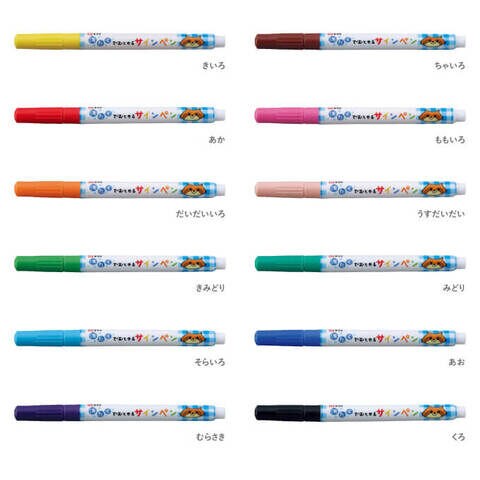 • 12色:黄色・赤・黄緑・橙色・桃色・緑・うすだいだい・紫・青・茶色・空色・黒