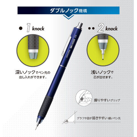 ◆ノックでペン先を完全収納できるダブルノックシャープペンシルです。