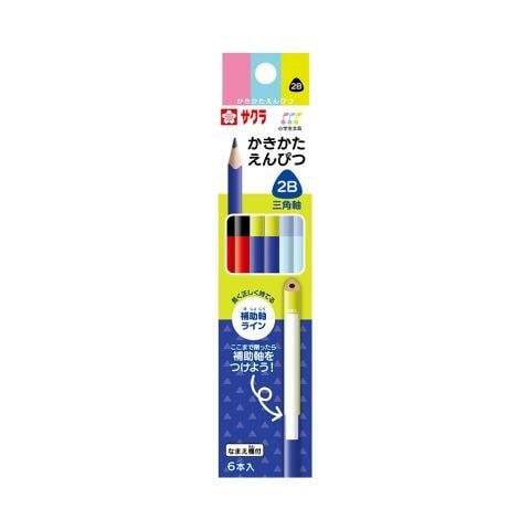 サクラクレパス かきかたえんぴつ 三角軸 補助軸ライン(2B・6本入) GE2B3-6B 【返品種別A】