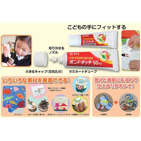 ◆片面が紙・木・布であれば、牛乳パック・ペットボトルなど、いろいろな工作材料を接着出来ます。