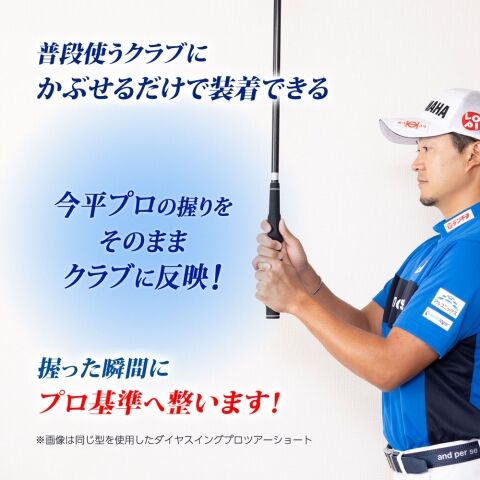 プロゴルファー今平周吾選手のグリップ理論を形状に落とし込み、いつものクラブでそのまま体感できるのが特長。