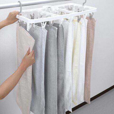 ◆フレームの対向する場所に同じ色のピンチを配置しているので洗濯物が干しやすい。