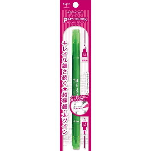 水性カラーサインペンのロングセラー「プレイカラー」に細書きタイプの新シリーズが登場です。1本で色々な筆記ができる超極細芯と新太芯のツインタイプ。