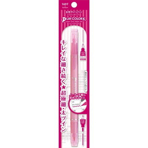 水性カラーサインペンのロングセラー「プレイカラー」に細書きタイプの新シリーズが登場です。1本で色々な筆記ができる超極細芯と新太芯のツインタイプ。