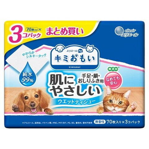 大王製紙 キミおもい 肌にやさしいウエットティシュー 純水99% 70枚×3P エリエール ヤサシイWテイシユジユンスイ99%3P 【返品種別B】