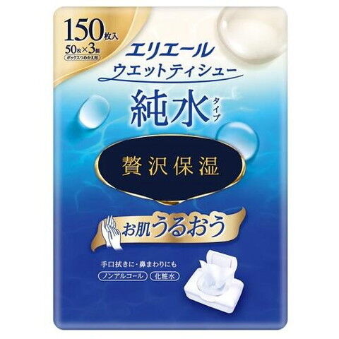 大王製紙 エリエール ウエットティシュー 純水タイプ 贅沢保湿 ボックスつめかえ用(50枚入×3個パック) EウエツトジユンスイBOXカエ50*3 【返品種別A】