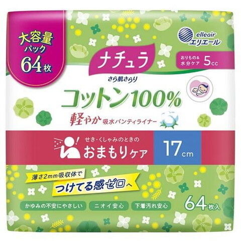 大王製紙 ナチュラ さら肌さらり コットン100% 軽やか吸水パンティライナー 17cm 5cc 大容量64枚 ナチユラC17CM 5CC 64マイ 【返品種別A】